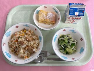 11月29日(土) 牛乳 コーンとウインナーのピラフ グリーンサラダ アップルケーキ