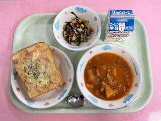11月5日(水) 牛乳 ツナポテトトースト 鶏肉のトマトシチュー ひじきのサラダ