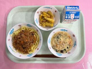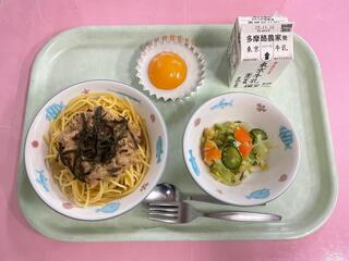 11月9日(日) 牛乳(東京牛乳) 和風おろしツナ・スパゲティ ひよこ豆入りサラダ おかしな目玉焼き
