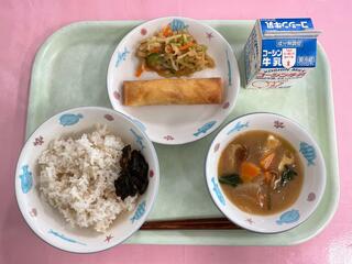 11月4日(火) 「十三夜献立」牛乳 栗枝豆ご飯 いかのかりんあげ わかめのからし和え 月見汁