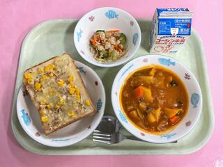 12月3日(水) 牛乳 ツナマヨトースト 海鮮トマトシチュー フライビーンズサラダ
