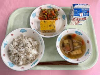12月10日(水) 牛乳 麦入りご飯 鱈のみそマヨネーズ焼き 揚げじゃがきんぴら 生揚げのかきたま汁