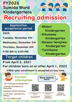 墨田区立幼稚園 令和8年(2026年)度 入園募集について