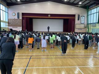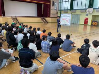 その後は、卒業まで残り半年となった6年生に向けて、校長先生から将来のことについてお話がありました。自分の将来のためにも毎日コツコツと努力を積み重ねてほしいと願っています。