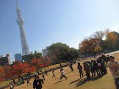 先週、1,2年生合同で生活科見学で隅田公園に行きました。色とりどりの落ち葉を見つけたり、たくさん走って頬が赤らんだり・・・。2年生が遊びを計画し、1年生をリードしてあげる姿も。学校の外で友達や自然といっぱい関わって、心をたくさん働かせ、様々なことを感じることができた1日でした。