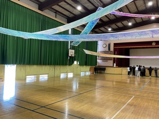 午後は、展覧会に向けて6年生が体育館を整備してくれました。