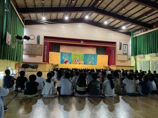 子供たちはおもしろい台詞にどっと笑ったり、給食のおばちゃんたちがどんな思いで給食を作ってくれているのかを考えたり、楽しみながらも学びのある時間になりました。