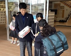 10月20日〜25日の登校時間に、生徒会役員とボランティア防災部員が募金箱を持って募金活動をしています。登校してきた生徒は快く募金に協力してくれています。