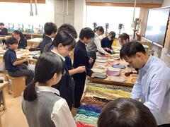 10月31日(金)1年生が皮革細工体験をしました。半世紀以上にわたり皮革素材の加工を行っている墨田キールさんに来ていただいて、ペンケースを作りました。皮と革の違いを知り、世界に誇れる仕事に関わることができました。