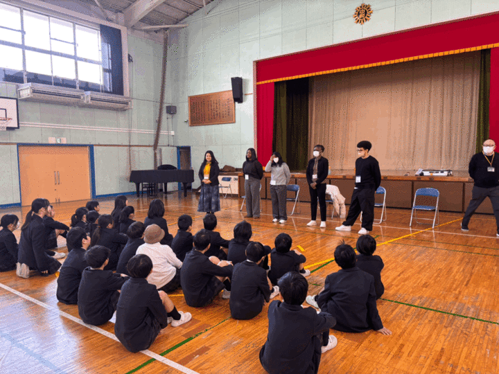 本日、本校ではイングリッシュ・キャラバンを実施し、ネイティブ講師と交流しながら英語に親しむ活動を行いました。子どもたちは歌やゲーム、買い物体験、自己紹介など、学年に応じたプログラムに積極的に取り組み、楽しみながら英語で伝える力を伸ばしました。初めは緊張していた児童も、活動を通して笑顔が増え、自分の言葉で伝えようとする姿が多く見られました。今日の経験が、今後の学びへの意欲につながることを期待しています。