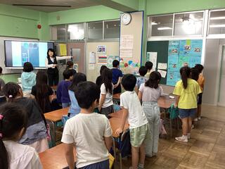 道路の正しい使い方、横断歩道の正しい歩き方についてスライドを使いながら分かりやすく教えていただきました。