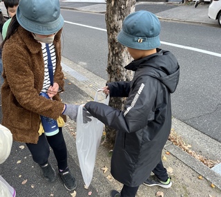 ボランティア委員会で、学校から日進公園までのクリーンアップ活動を行いました。道路にもたばこの吸い殻が落ちていたり、草むらにごみが捨てられていたりしました。たくさんのごみを拾うことができ、地域がきれいになりました。