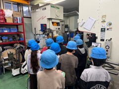 12月18日(木)に、社会科「未来をつくり出す工業生産」の学習の一環として「ヨシズミプレス」へ工場見学に行きました。金属工業を営む中小工場で、金属を加工する工程や製品ができるまでの仕組みを間近で見ることができました。見学では、大型の機械が動く様子を目の当たりにし、子供たちはその迫力に驚いていました。ものづくりの工夫や技術の大切さを学ぶ、貴重な体験となりました。