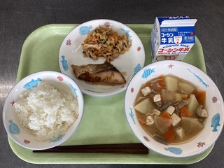 ごはん ぶりのこうみやき きりぼしだいこんのいために とんじる 牛乳