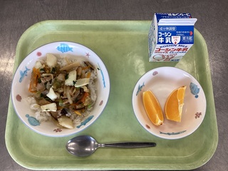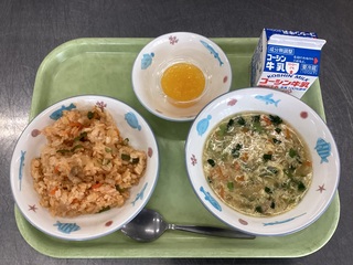 チキンライス たまごスープ つぶつぶみかんゼリー 牛乳