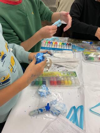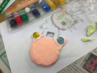2年生が図工室を使って図工の授業をしました。感謝の気持ちを伝える人をイメージし、プレゼントのメダルをつくりました。紙粘土に絵の具を混ぜて、メダルを形づくったらビー玉などの装飾をして完成です。紙粘土の触り心地や絵の具の混ざり具合いを楽しみながら、プレゼントをする相手を想像して取り組みました。