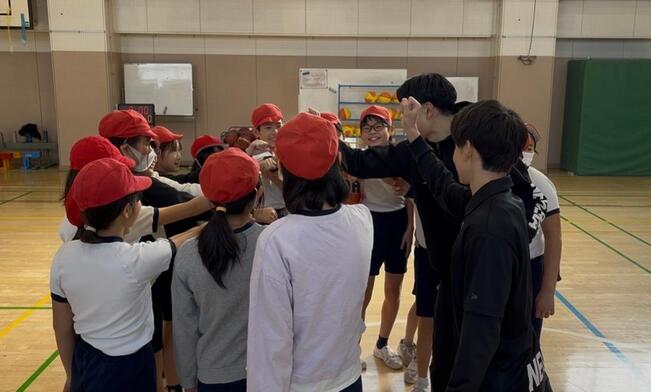 全員に遊びの内容やルールが伝わるように、6年生が言葉を選びながら説明しています。