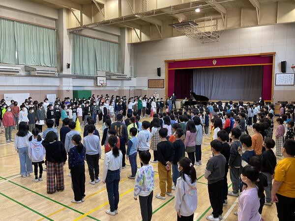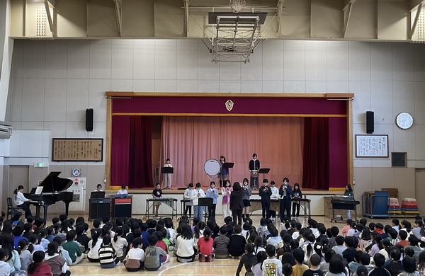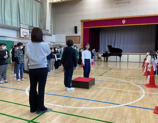 「翼をください」を全校で合唱しました。指揮に合わせて、一体感のある歌声が響きました。