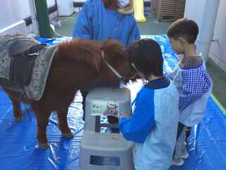 ポニーさん、乗せてくれてありがとう。ニンジンをどうぞ。