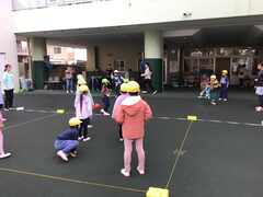 5歳児はドッジボール。いつもよりたくさんの友達と遊べて楽しいね。