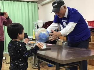 サイエンスショー 講師の先生に来ていただき、様々な科学遊びをしていただきました。プチロケットを発射させたり、液体窒素を使った実験をしていただいたりしました。「ふしぎ!」「どうして?」「どうなってるの」子供たちは、わくわくと驚きの連続でした。