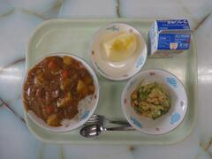 12月23日(火曜)の給食・カレーライス・大豆入りサラダ・りんご・牛乳