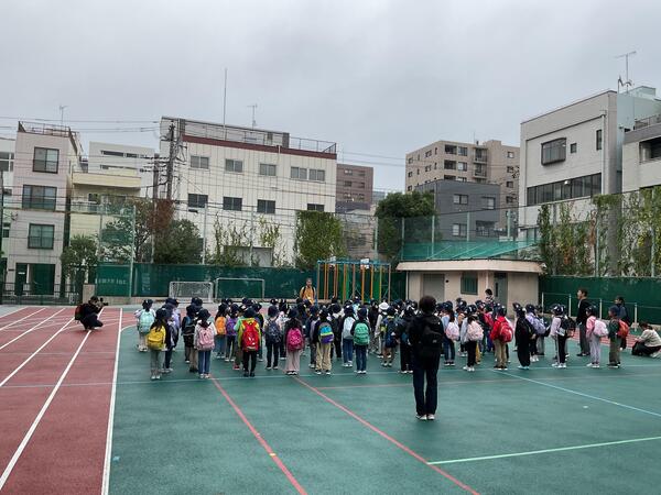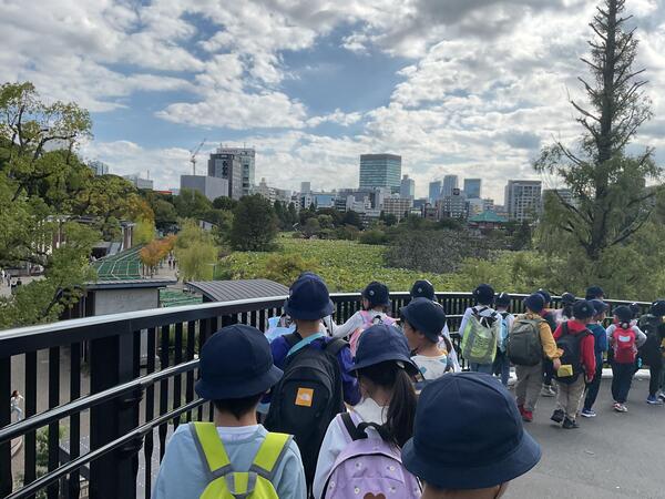はじめての生活科見学です。しっかり副校長先生の話を聞いています。