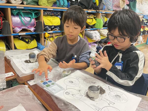どろだんごをピカピカにしています。楽しみながら、真剣に取り組みました!