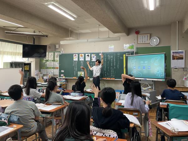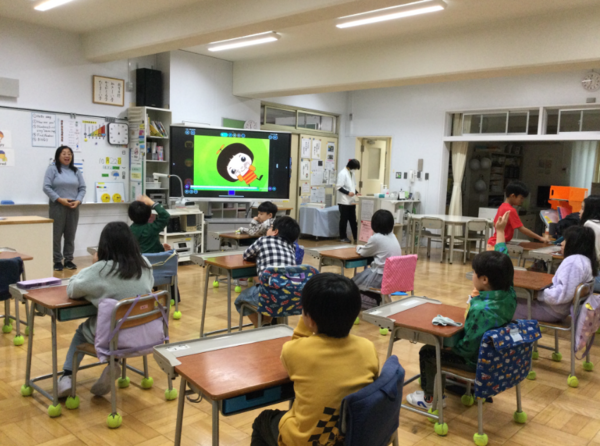 外国語の学習では、いつも最初に歌を歌ったり、今日の気分を英語で話したりしています。