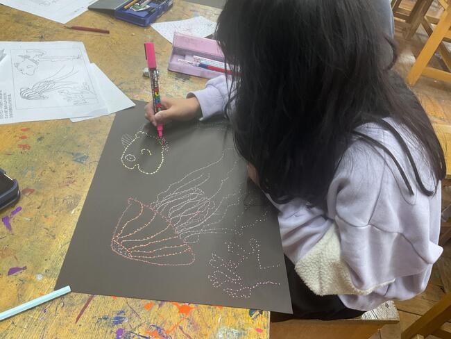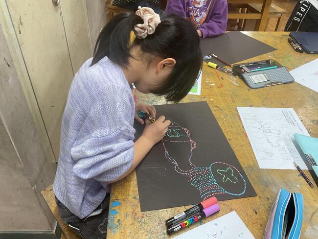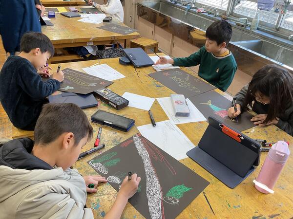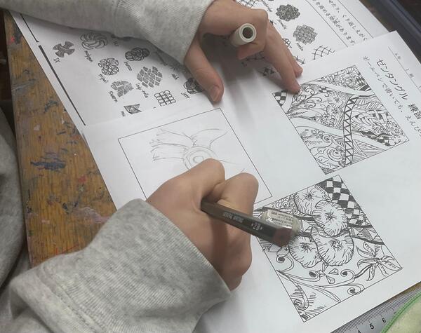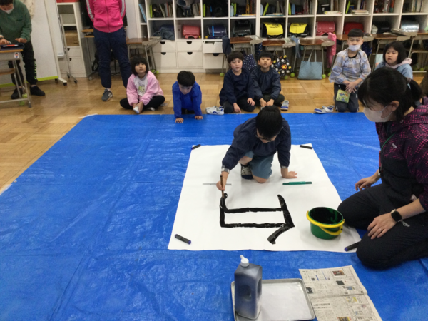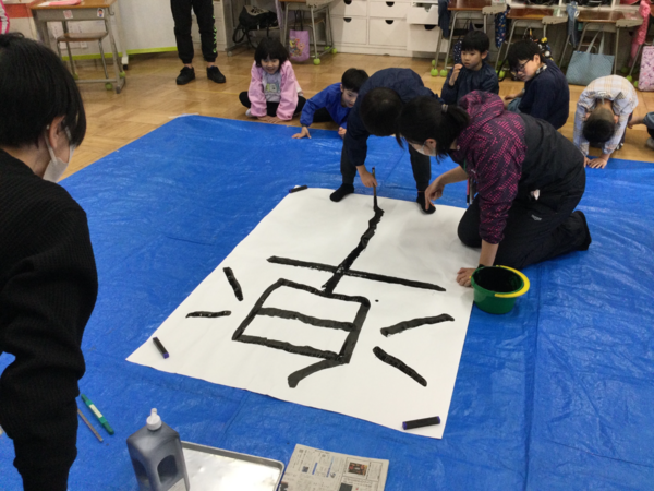 一人一画を担当してみんなで協力して「楽」を書きました。