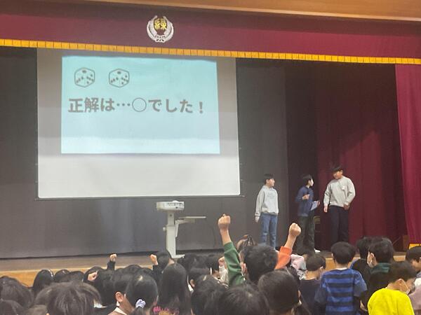 集会委員会が考えたクイズゲームを全校で楽しみました!