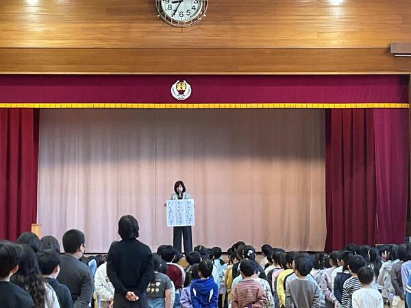 校長先生からお話がありました。みんなで「やさしい子」「かんがえる子」「たくましい子」を意識していきます!