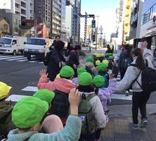 交通安全に気を付けて、年長組さんがリードしながら上野動物園に向かいました。