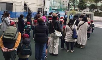 年長組は保護者の方に少し後ろを歩いてもらい、年少組は親子で手をつないで歩いてもらいました。