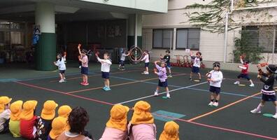 運動会での表現「よさこいソーランロック」をお友達に見てもらいました。