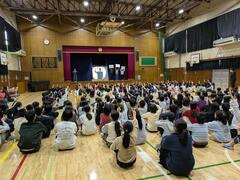 昨日は平和集会があり、4,5年生が空襲体験者の方のお話を聞きました。