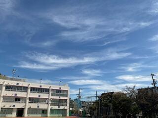 1年生は、国語「くじらぐも」の音読劇を発表しました。はじめてお話を聞いたときから、くじらぐもが1年生のまねっこをするところがお気に入りのようで、楽しく学習に取り組んできました。「くじらぐも、かわいい!」「わたしもくじらぐもにのってみたい!」と子供たちからかわいい感想がたくさん聞こえてきました。そんな子供たちの思いが届いたのか、1年生が体育をやっているときに、押上小学校の空にも本物の大きなくじらぐもが現れました!子供たちは自然と、「天までとどけ、1,2,3!」とみんなでジャンプしていて、とても微笑ましかったです。