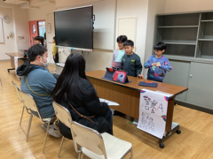 日本の「魅力」とは何か、どのように伝えるのか、一人ひとりが真剣に考え、話し合いました。「スライドには写真や動画を入れよう。」「体験してもらおう。」「オリジナルソングを作ろう!」などアイディア盛りだくさんのパビリオンは、本番当日大盛況でした。この経験を中学生になってからも生かしてほしいなと期待しています。