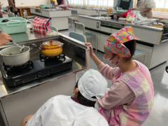 5年生の家庭科では、「ご飯と味噌汁」の調理実習を行いました。班の友達と協力しながら、お鍋でごはんを炊き、味噌汁を作りました。
