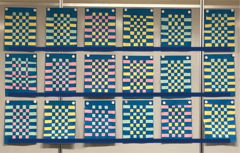 2年生は、図工で初めてカッターナイフの使い方を学習しました。使い方の動画を見たり安全についての説明をしっかりと聞いたりして真剣に練習に取り組みました。刃を紙に引っ掛けずにスムーズに切れるようたくさん切り、最後に画用紙を使った格子組みの作品が出来上がりました。初めて使うカッターナイフにドキドキしている様子でしたがルールを守って安全に取り扱うことができました。