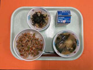11/11 高野豆腐のそぼろ丼 磯香和え みそ汁 牛乳