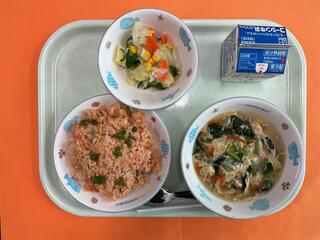11/12 チキンライス ポテト入りサラダ 卵スープ 牛乳