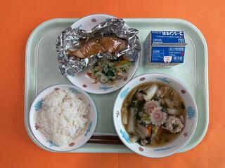11/4 ごはん 鮭の塩焼き からしあえ 吉野汁 牛乳