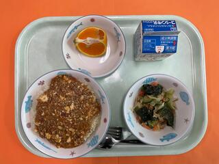 11/26 マーボー丼 春雨サラダ くだもの(りんご) 牛乳