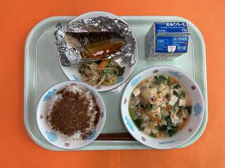 11/21 ごはん おかかのふりかけ さばのピリ辛焼き ごま酢和え かきたま汁 牛乳