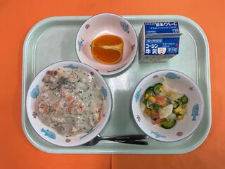 3/16 エビクリームライス みそドレッシングサラダ くだもの(せとか) 牛乳