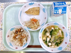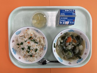 今日から1年生の給食がスタートしました!昨日、栄養教諭から給食について話を聞き、今日は具体的に準備や片付けのルールを確認しました。給食当番さんを中心に、協力して仕事を進める様子が見られました。