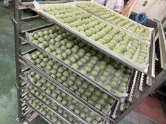 今日は草だんごを手作りしました。子供たちにもクイズを出しましたが、今日はほうれん草をミキサーにかけて使いました。
