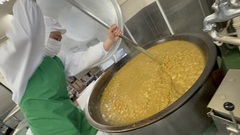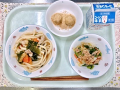 さて、今日のわかめうどんには、旬の新わかめを使いました。いつもは乾燥のカットわかめを使うことが多いのですが、今の時期にしか味わえない新ものを取り入れました。生のわかめは食感もしっかりと味わうことができます。うどんも、積極的におかわりする様子が見られました。