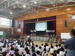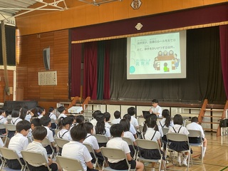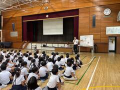4年生を対象に、いじめ防止授業地域公開講座を体育館で行いました。